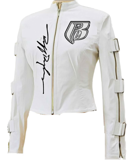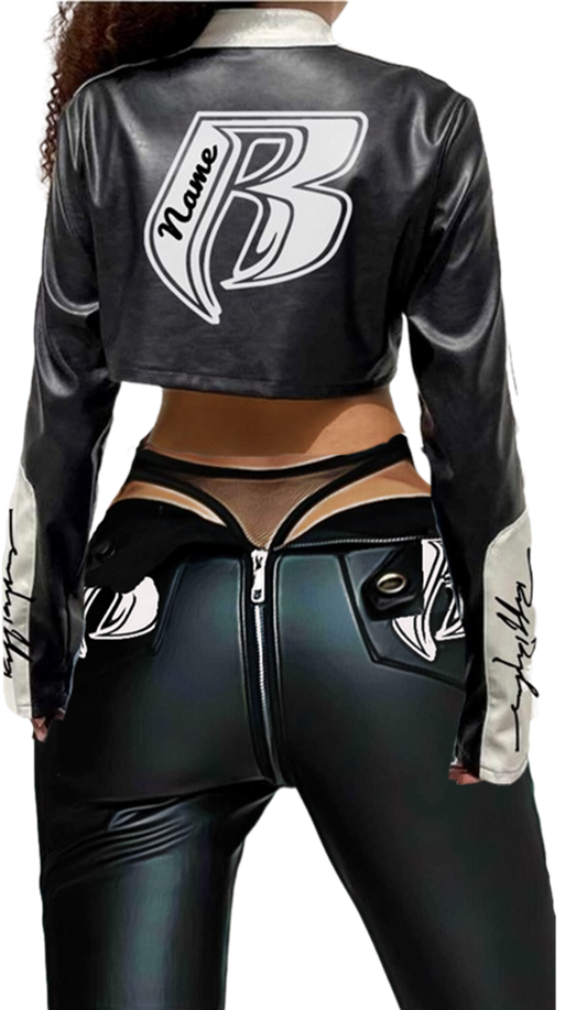 RR Blk/Wht Cropped Embroidered Leather Motorcycle Jacket (Bottoms sold separately)