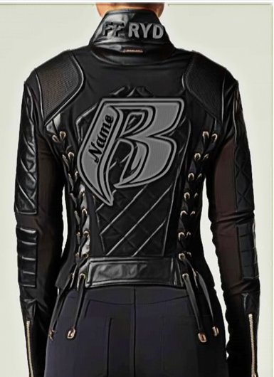 RR Blk Quilted Embroidered Leather Motorcycle Jacket