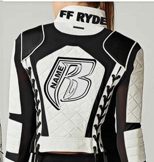 RR Blk/Wht Quilted Embroidered Leather Motorcycle Jacket