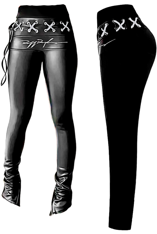 RR Blk Leather Laced Pants