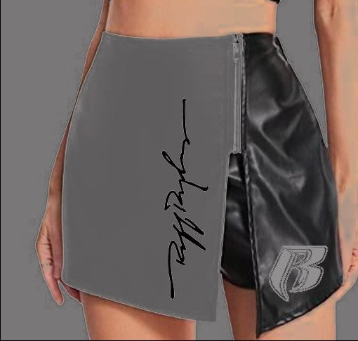 RR Leather Embroidered Mini Skort