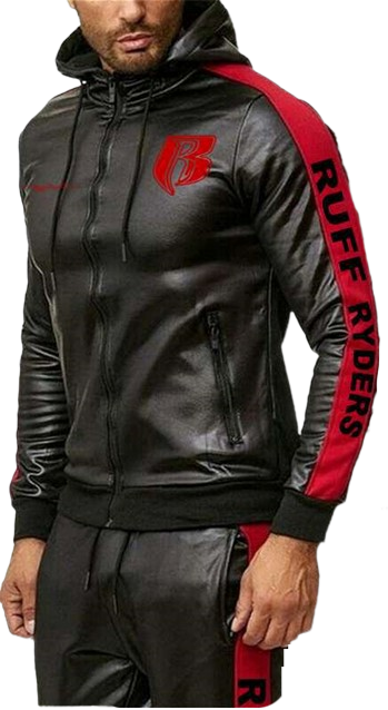 Leather Hooded Embroidered Track Suits - 4 Colors