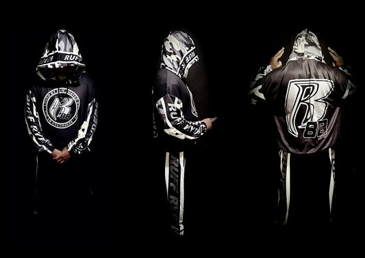 RR Long Sleeve Sun Protection Hoodie Blk/Wht - Add your name.