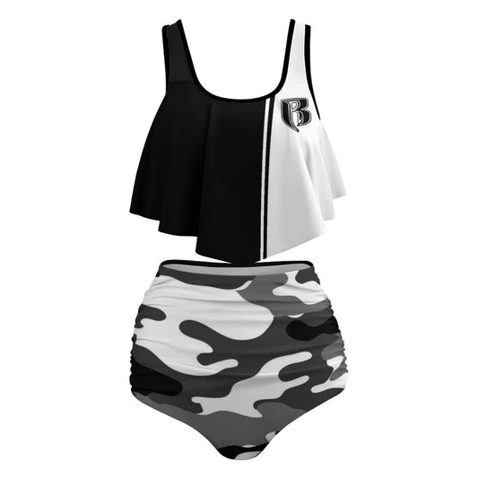 Wht/Camo Flounce Two-piece Plus Sized Swimsuit
