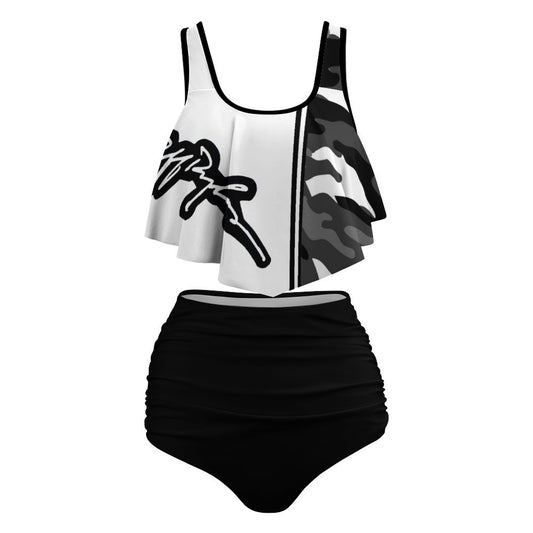 RR Blk/Wht Flounce Two-piece Plus Sized Swimsuit