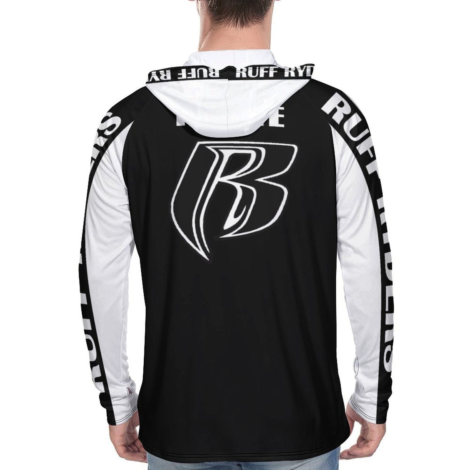 RR Long Sleeve Sun Protection Hoodie Blk/Wht - Add your name.